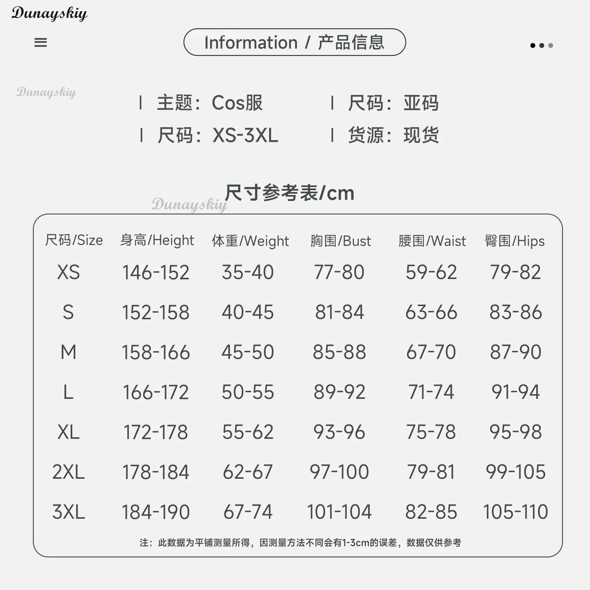 2.Cosplay clothing belongs to special clothing. It cannot be returned or refunded except for quality problems. Please buy it carefully!