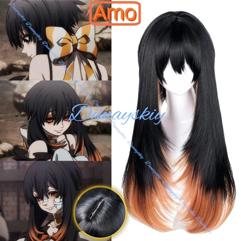 Anime Gachiakuta Amo Empool Cosplay Wig Long Black Orange Hair 70cm For Women Men Halloween Party Props Wig + Free Cap