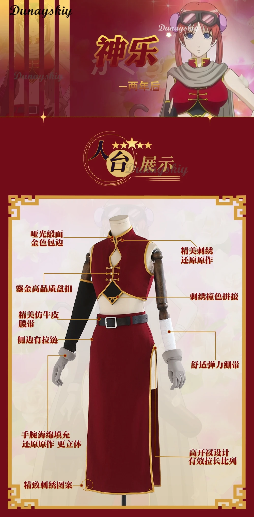 Anime GinTama Kagura 2 Years Later Uniform Prop China Style Suit Cosplay Costume Customized Halloween Carnival Party