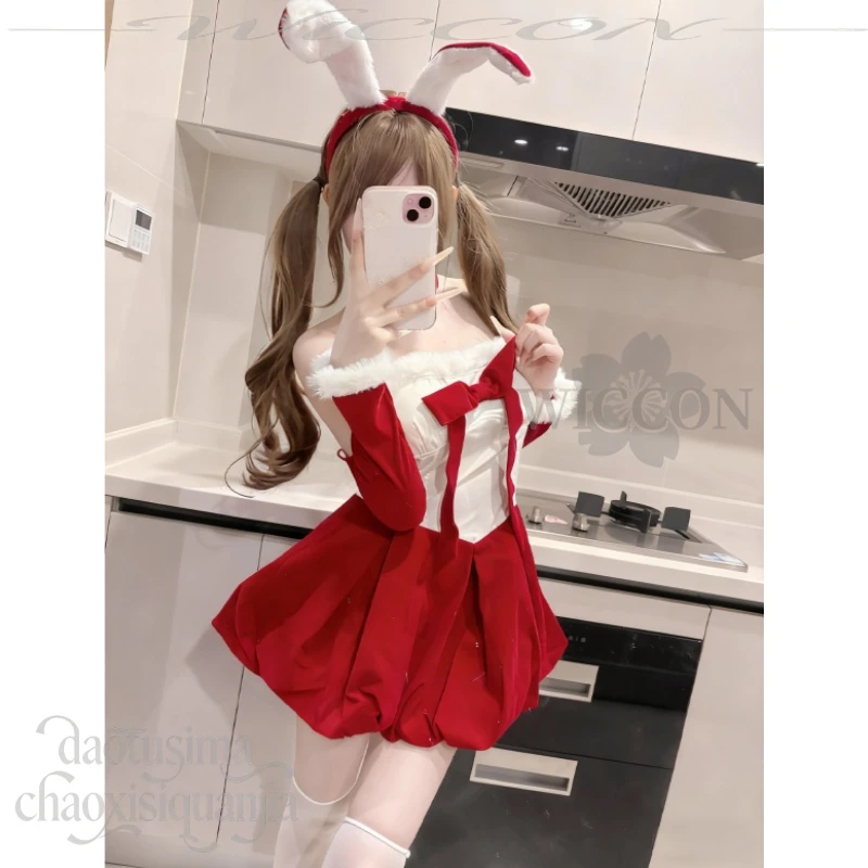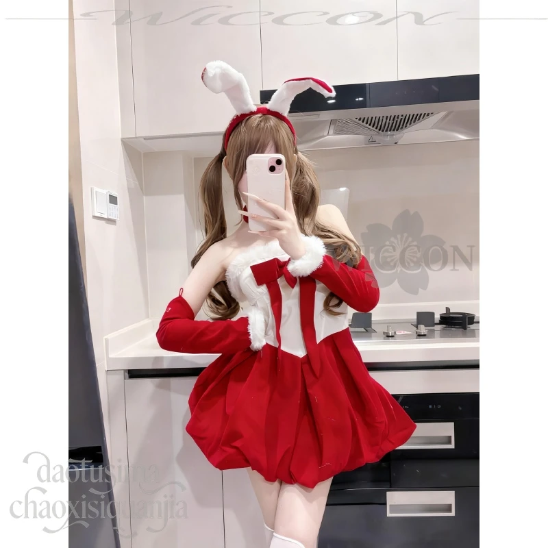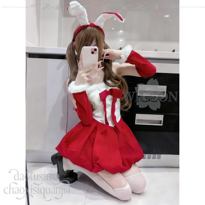 Anime Kawaii Original Design Red Velvet Maid Bunny Dress Cute Rabbit Headwear Cos Halloween Christmas 2025 Party Outfit