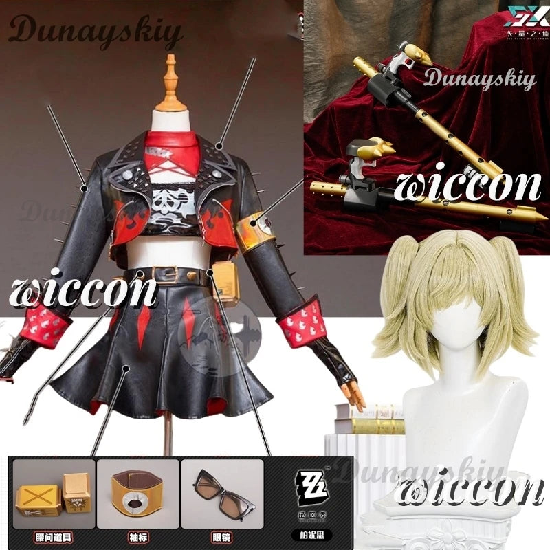 Burnice White Cosplay Costume Wig Hair Zenless Zone Zero Role Play Halloween Party Glasses Woman Comic-Con Disguise Combat Set