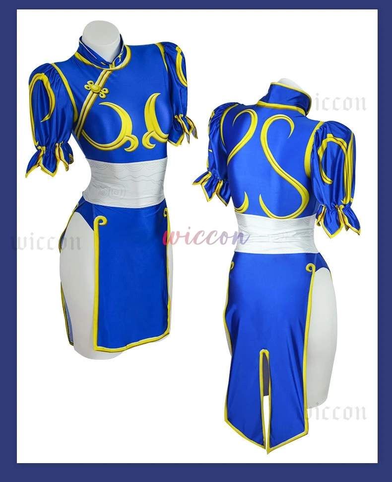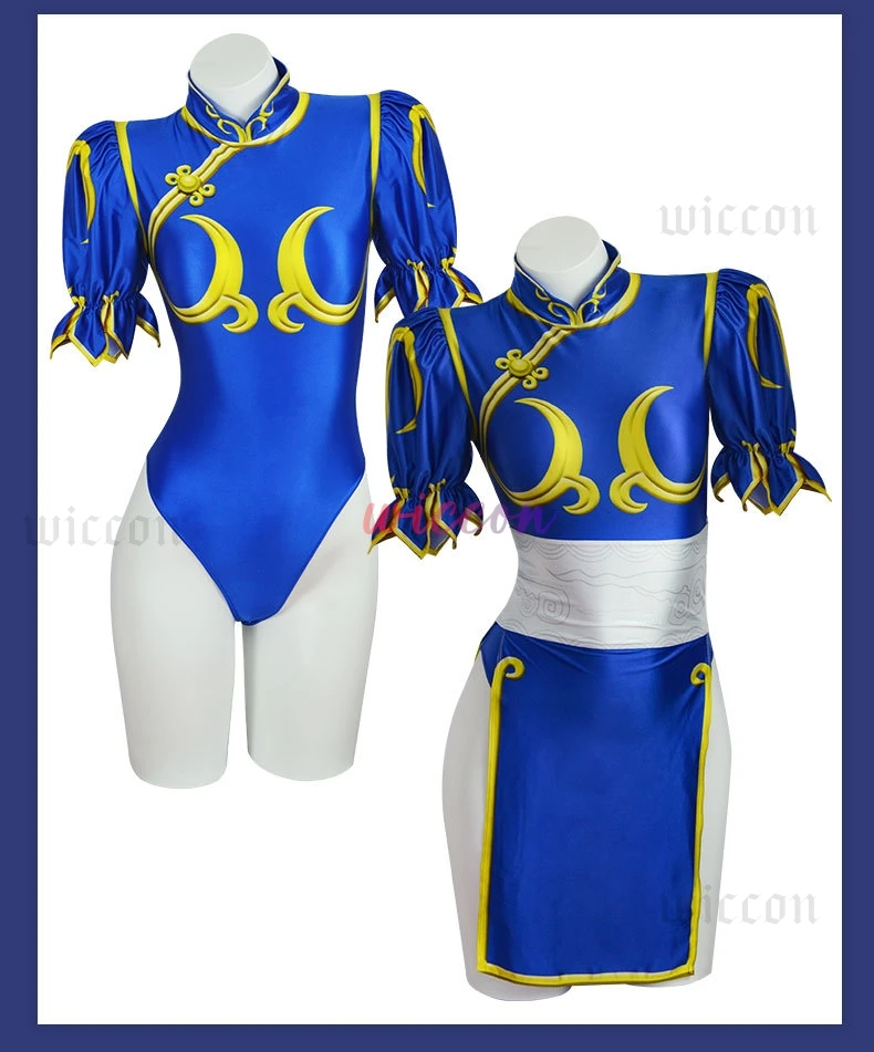 Games Chun Li Cosplay Costumes Sutorito Faita Blue Cheongsam Dress Women Sexy Bodysuit Headwear Suit Halloween Carnival Clothing