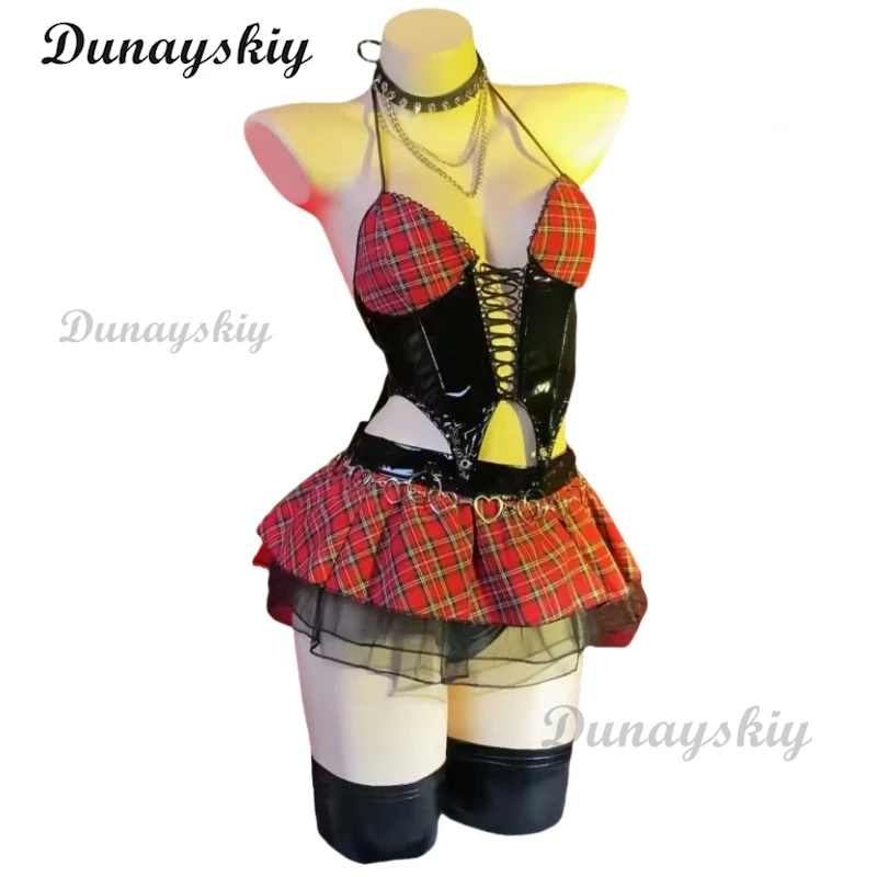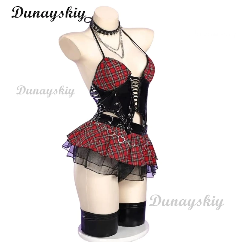 Miss Misa Cosplay Costume and Wig Halloween Gothic Top and Skirt with Net Stockings and Sleeves Black Corset Skirt Set Lace-up