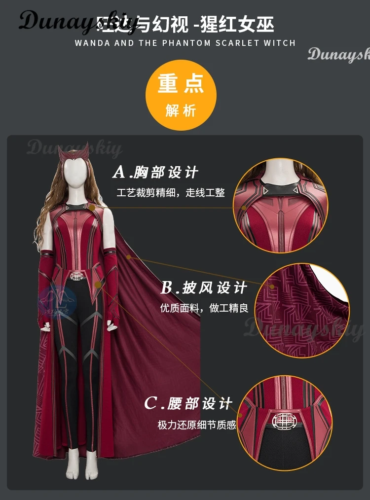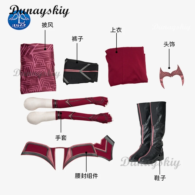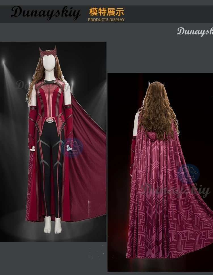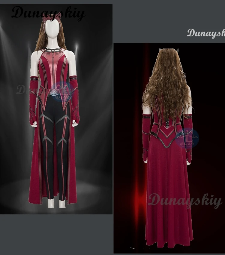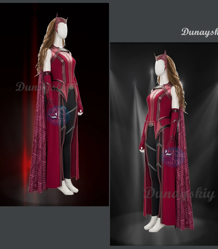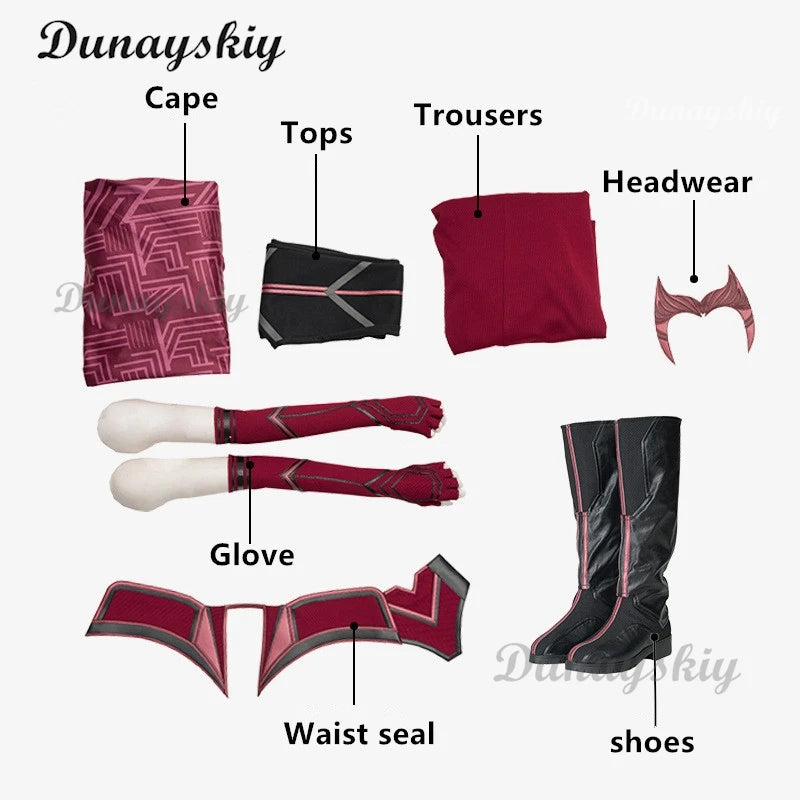 P-Jsmen Female Wanda Maximoff Cosplay Costume Scarlet Witch Headwear Cloak and Pants Full Set Outfit Halloween Accessories Props