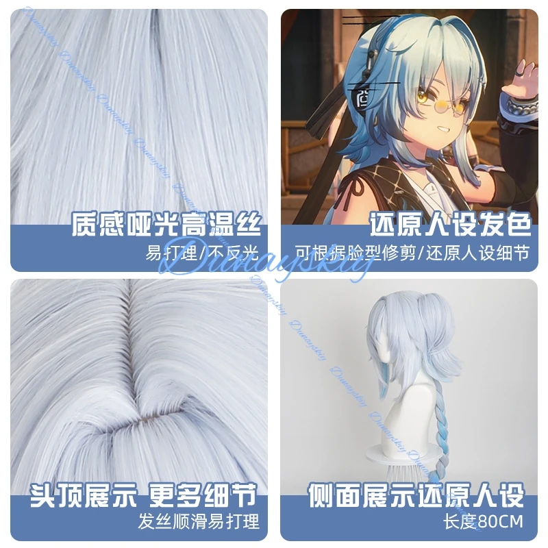 Wuthering Waves Buling Cosplay Wig Blue White Long Braids Hair Huanglong Halloween Party for Women Girls Carnival Accessory