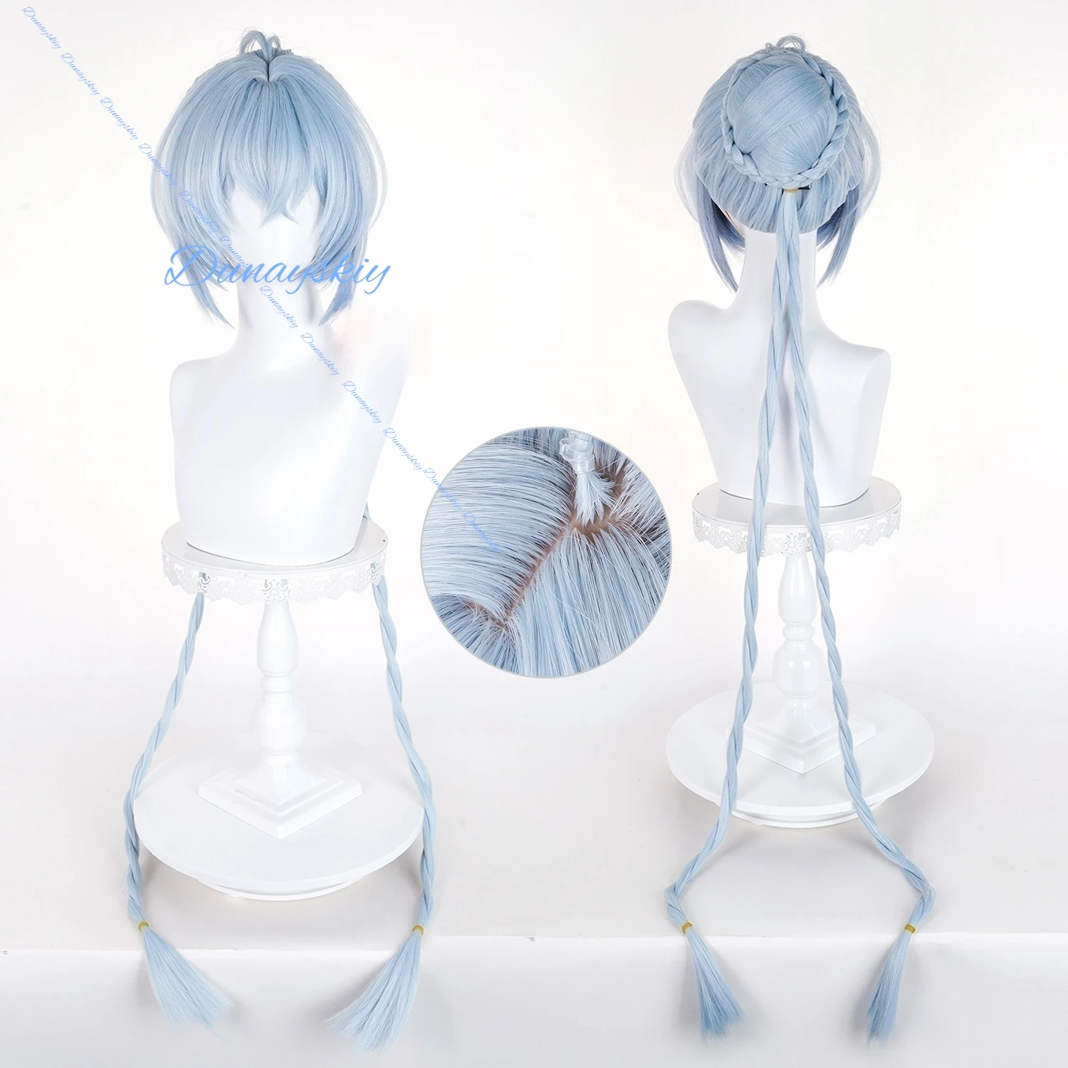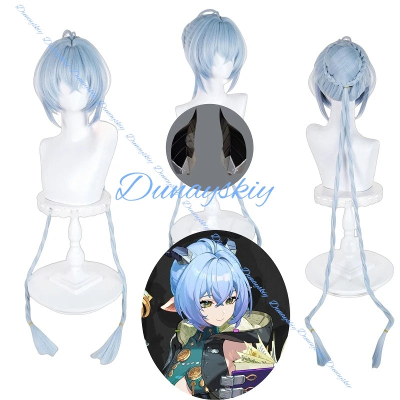 Zenless Zone Zero Lucia Cosplay Wig Prop Long Light Blue Braids Hair Bun Wigs For Women Girls Spook Shack Party Carnival